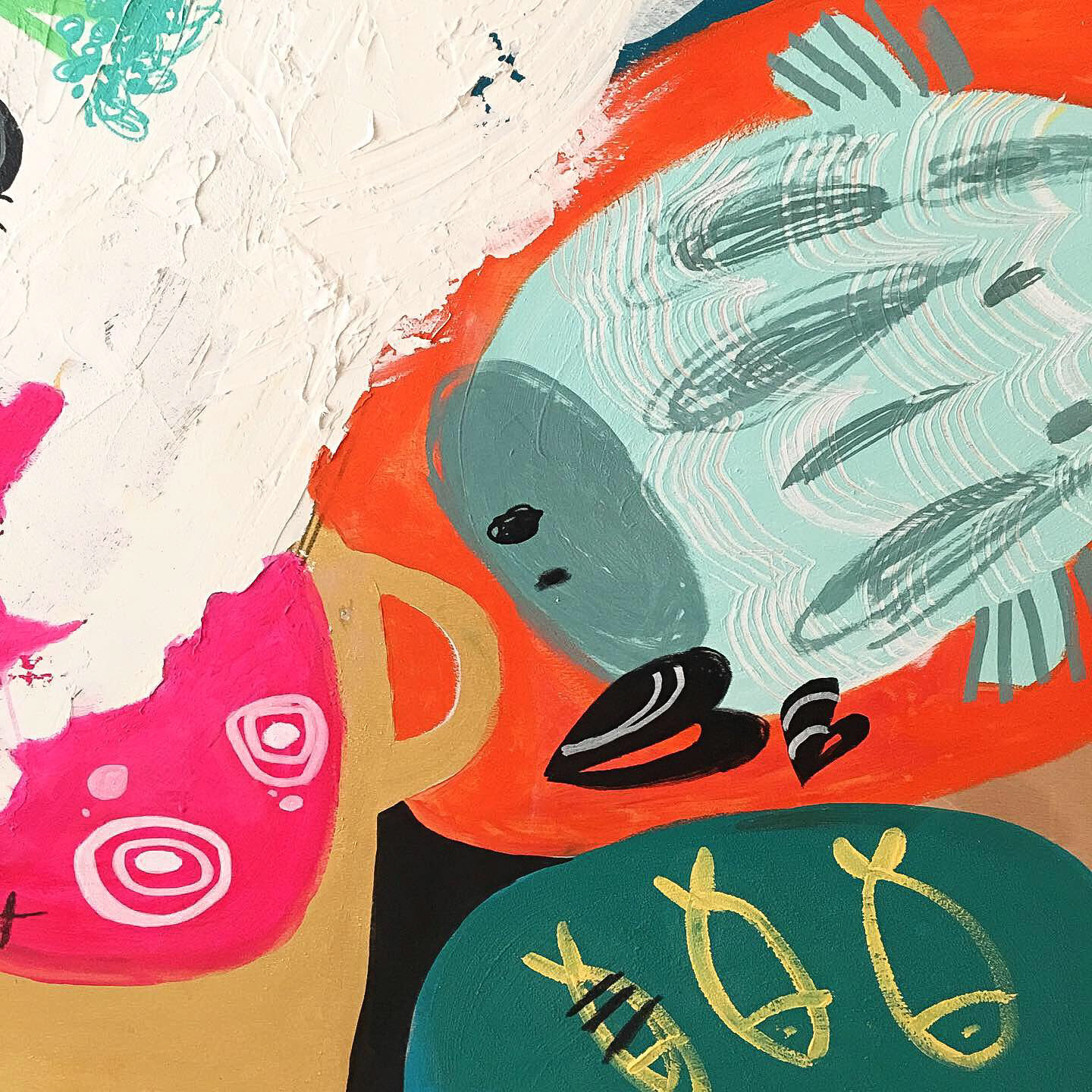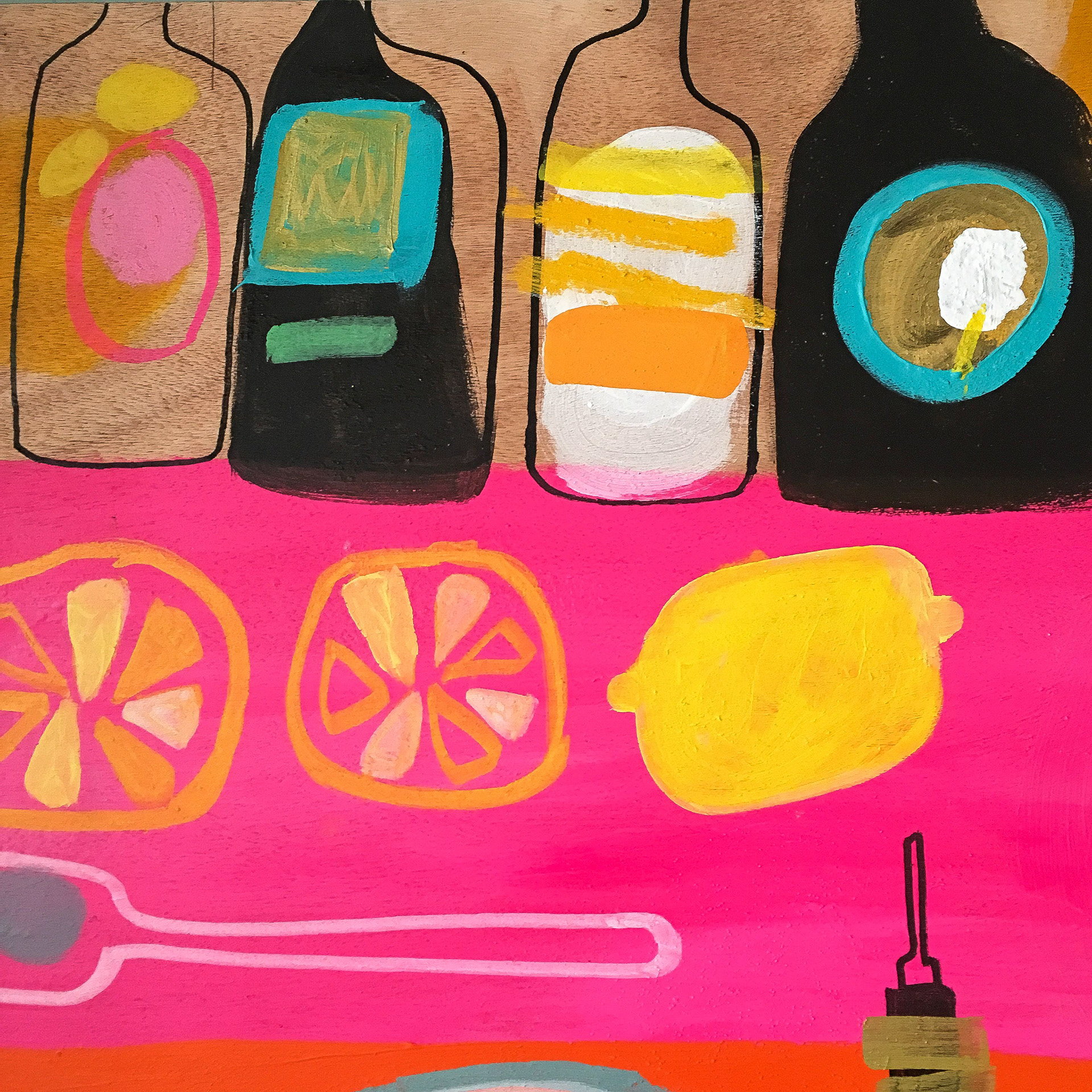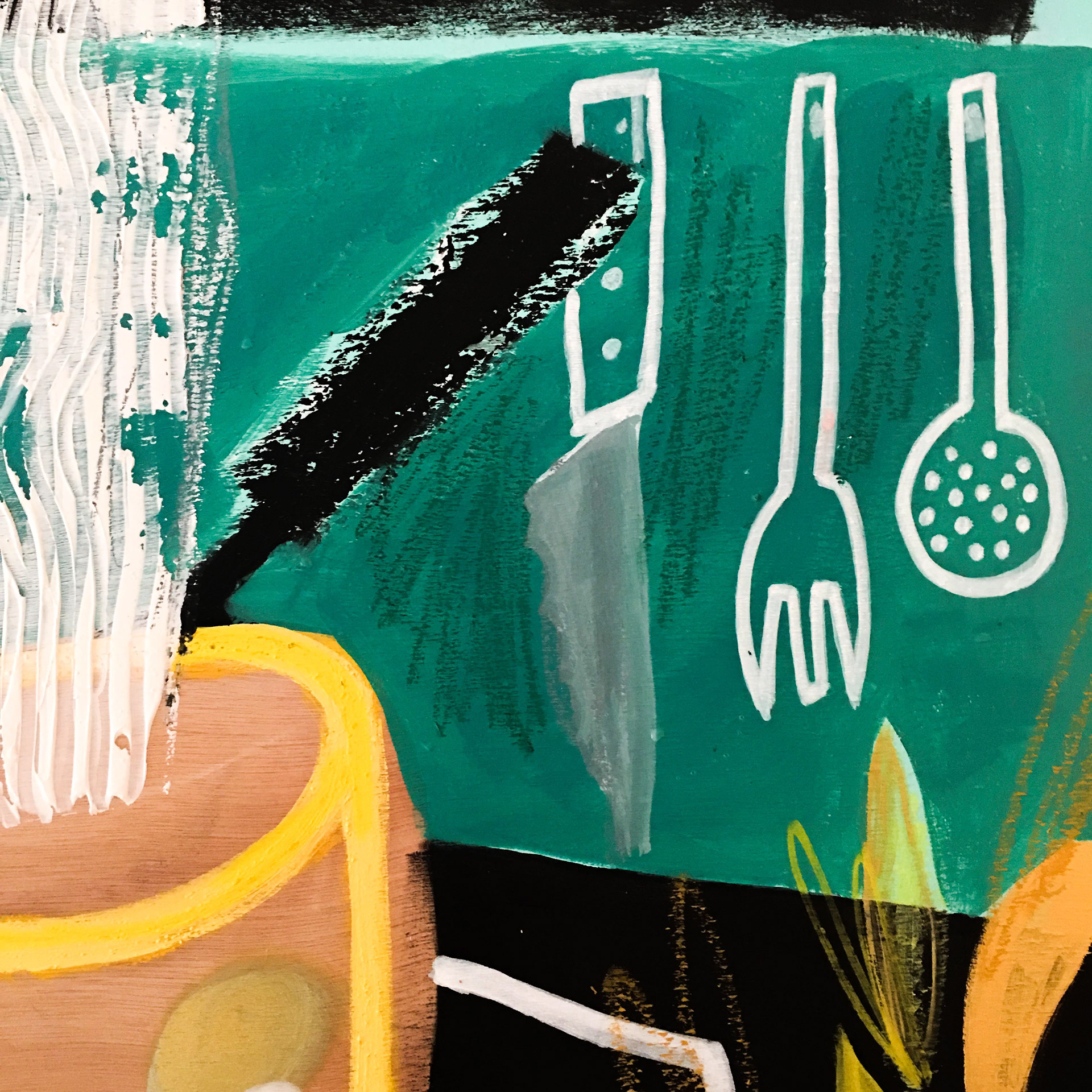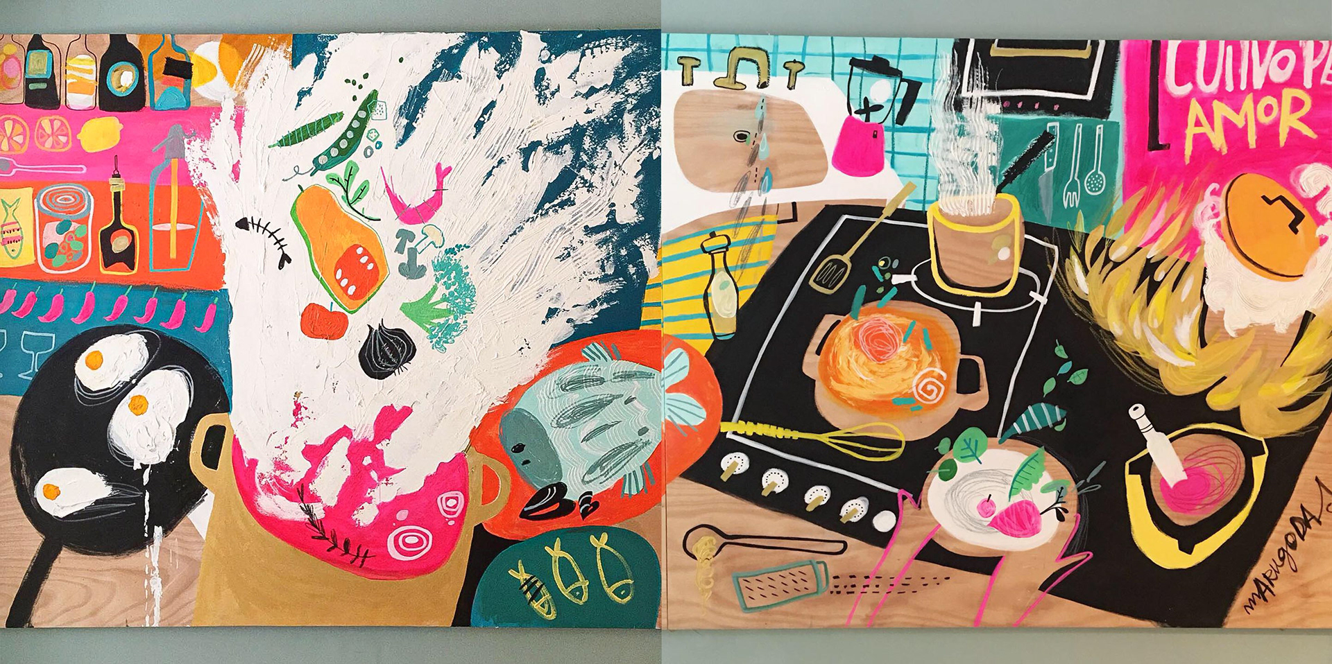 Mural painting for Enjoycooking Barcelona, made with acrylics on wood