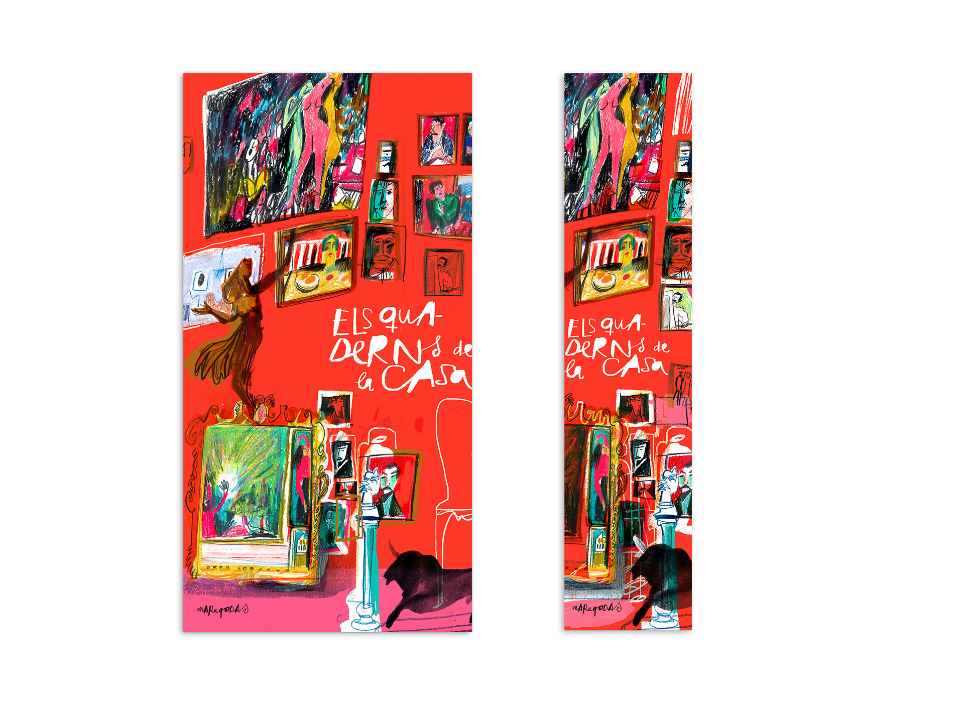 En aquesta intervenció intento reflectir totes aquestes connexions que m’ha transmès la casa, amb traços que intenten captar els espais, les obres i els objectes que l’Abelló va crear i col·leccionar amb tanta estima i que finalment conflueixen en un viatge il·lustrat, a estones dramàtic, d’altres divertit i caòtic, a través dels dibuixos i esbossos que he realitzat en quaderns, culminant el projecte en un mural pintat a dins la casa (o el museu) que reflecteix l’energia i la força que he sentit viatjant per la casa del pintor Abelló"
