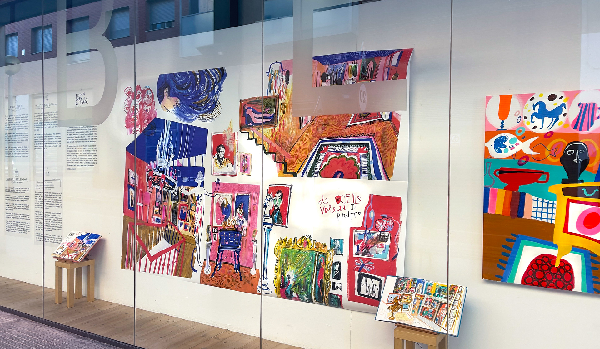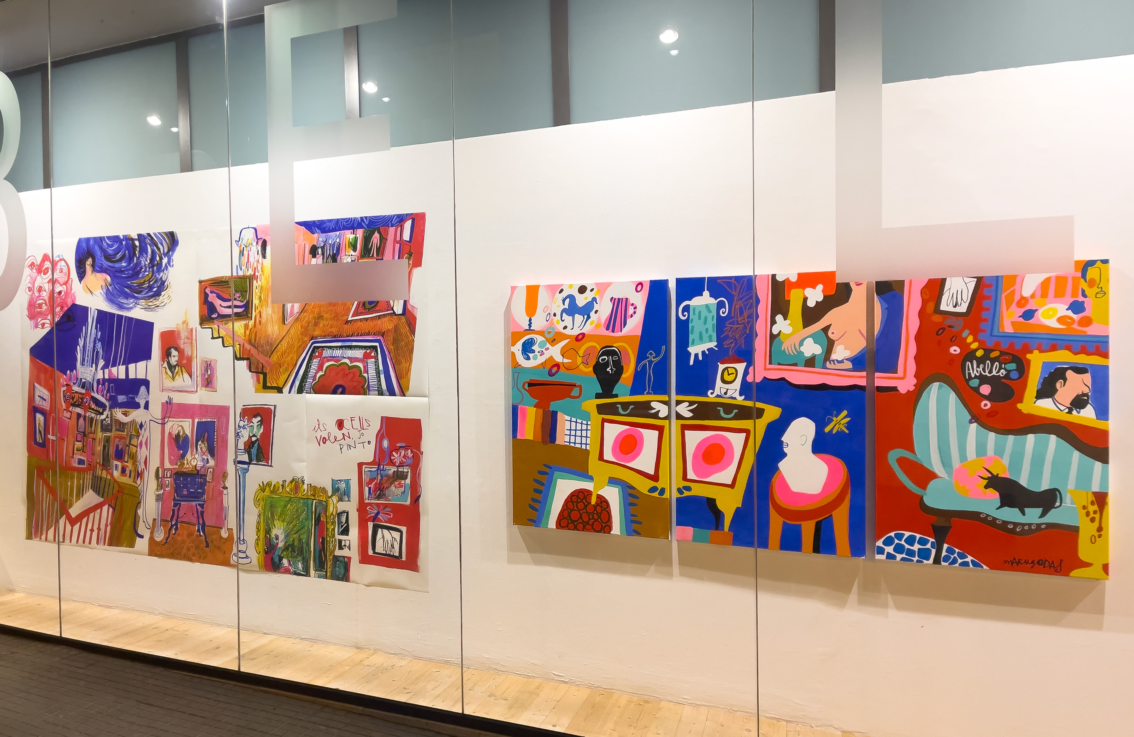 In this intervention, I attempt to reflect all these connections that the house has conveyed to me, through lines that seek to capture its spaces, its works, and the objects that Abelló created and collected with such care. All of this ultimately converges into an illustrated journey—at times dramatic, at others playful and chaotic—through the drawings and sketches I have made in my notebooks, culminating in a mural painted inside the house (or the museum), which reflects the energy and strength I felt while moving through the house of the painter Abelló.