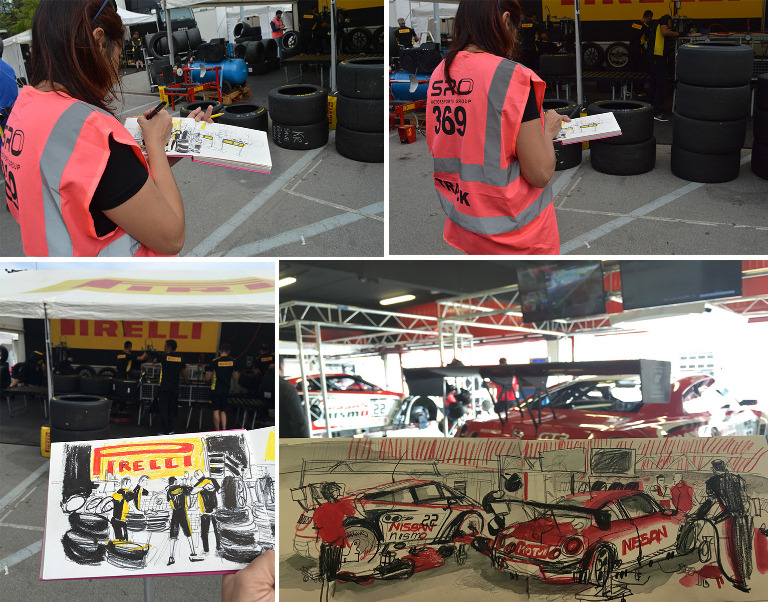 Some sketchers we have been invited to draw in the circuit of Montmeló.