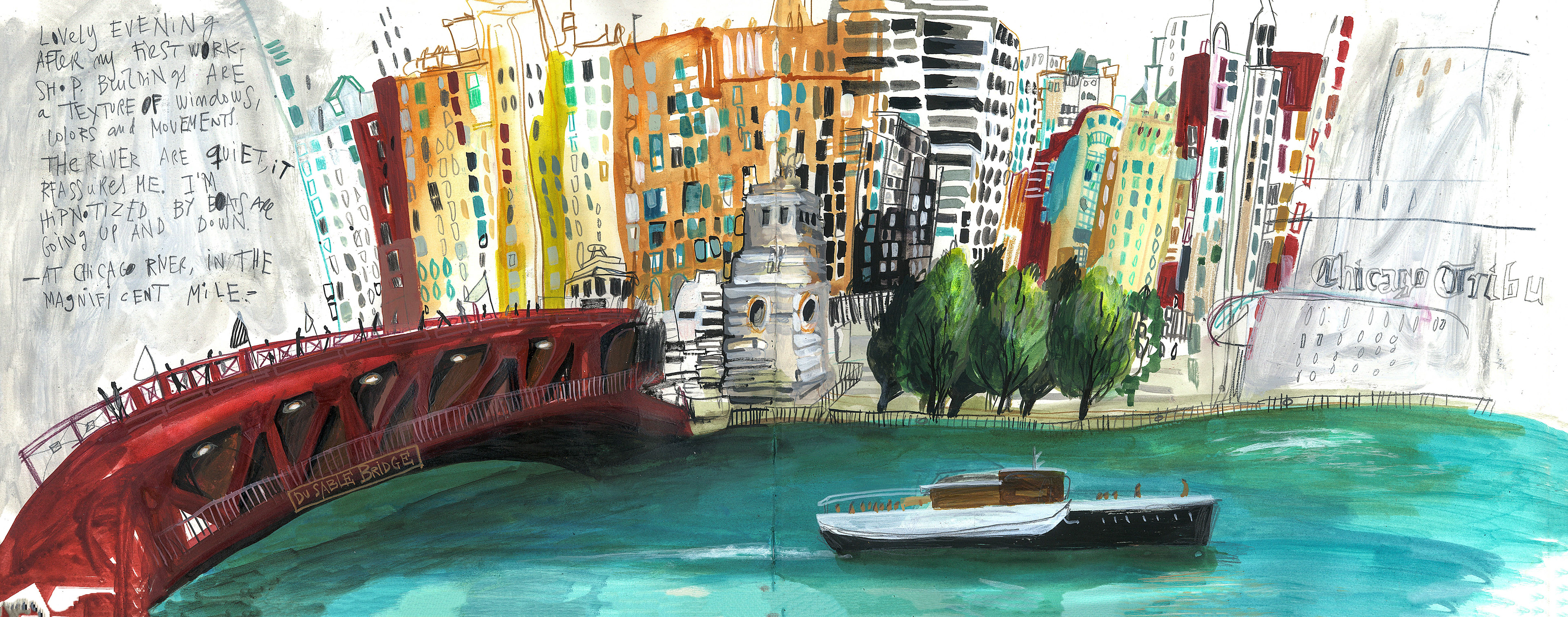 This is the sketchbook that I've done during the days I spent in Chicago at the 8th Symposium of Urban Sketchers. It has been a great honor to participate as an instructor and to be part of the team. I did a workshop called "gouache like a child" where my participants started in gouache technique and learned to look "like a child". The drawings of sketchbook are made on location, most of them with gouache. I've met sketchers from all over the world and I have made a lot of new friends. Thanks Usk! ;)